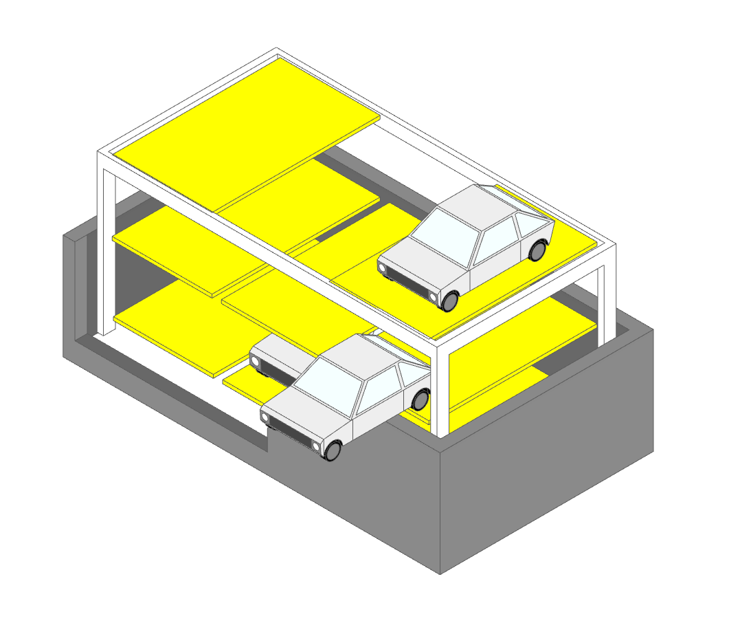 このタイプは車両格納用の地下ピットが設けられています。地下ピットは鉄筋コンクリートで造られており、内部には排水ポンプユニットが設置されていることもあります。このピット構造体は解体せずに残すのが一般的です。機械式駐車場設備を解体撤去した後に空洞となった地下ピット内の空間を以下のいずれかの工法によって蓋をして平面化します。